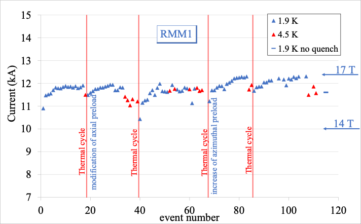 [4] E. Gautheron, et al. “Assembly and Test Results of the RMM1a,b Magnet, a CERN Technology Demonstrator Towards Nb3Sn Ultimate Performance” IEEE Trans. Appl. Supercond. 33 (2023) 4004108